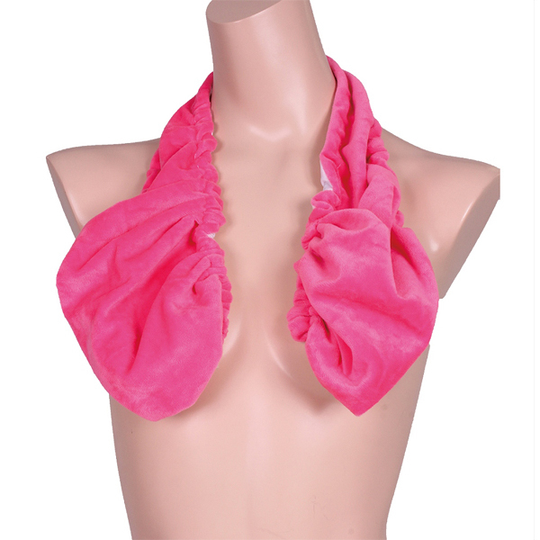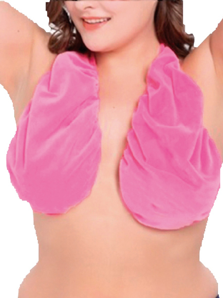バストの大きさに合わせて長さを調整できる優れものおっぱい包みタオルブラ。