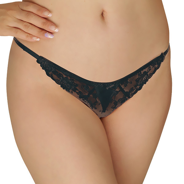 ブラックカラーとレース地にあしらわれた花柄が、気品のある女性へと変身させてくれます♪バックは紐タイプとエロさ抜群で、男性を誘惑する美しいデザインとなっております。