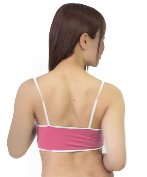 肌触り良く伸縮性のあるストレッチ生地を白のパイピングで縁取った可愛らしい日本製ブラ(ピンク)。
