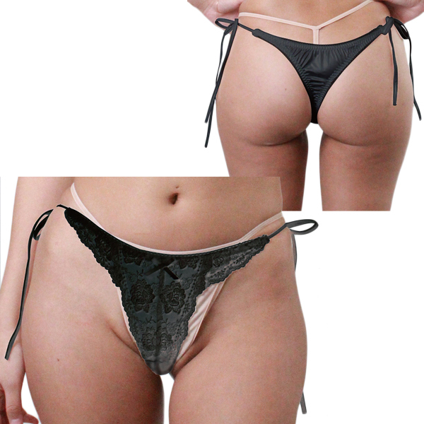生地から透けて見える素肌と華やかな刺繍、両サイドは結びヒモ仕様で大人の色気を感じる一枚♪◎ブラック、Lサイズ