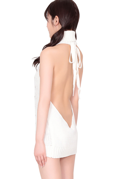 胸横から背中までがっつり露出させた大胆ニットセーターで可愛く誘惑♪特別な日の一着にぜひどうぞ!