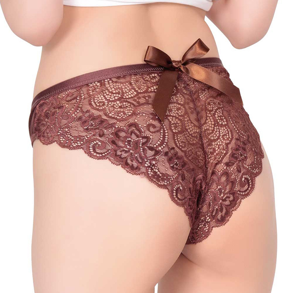 ペイズリーやフローラルをあしらったレースと大きめリボンのバックスタイルが超カワイイ!女性が喜ぶチョコレートの香りを付けた魅惑のランジェリー。