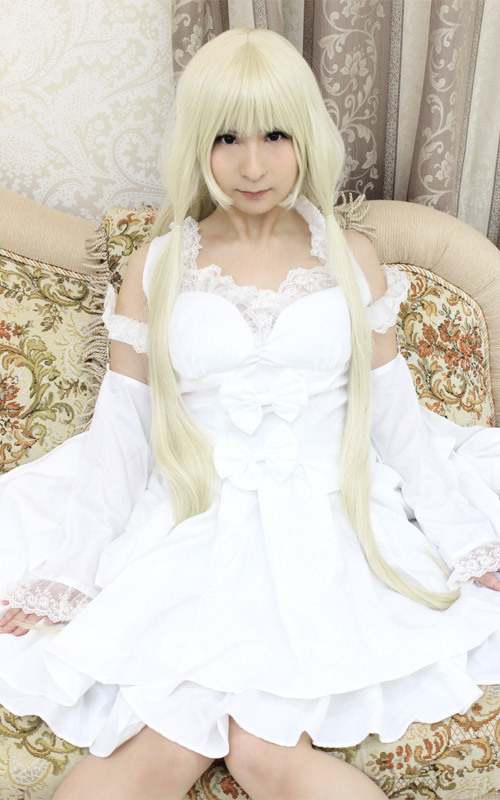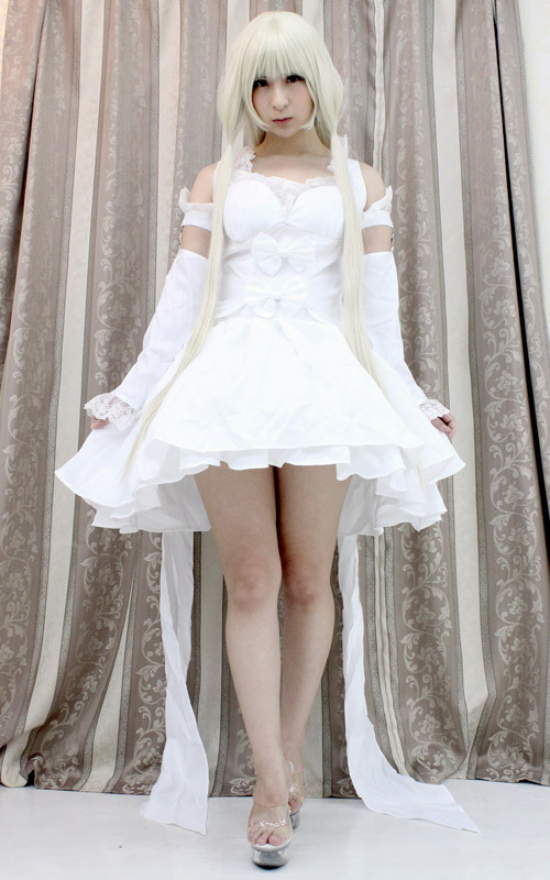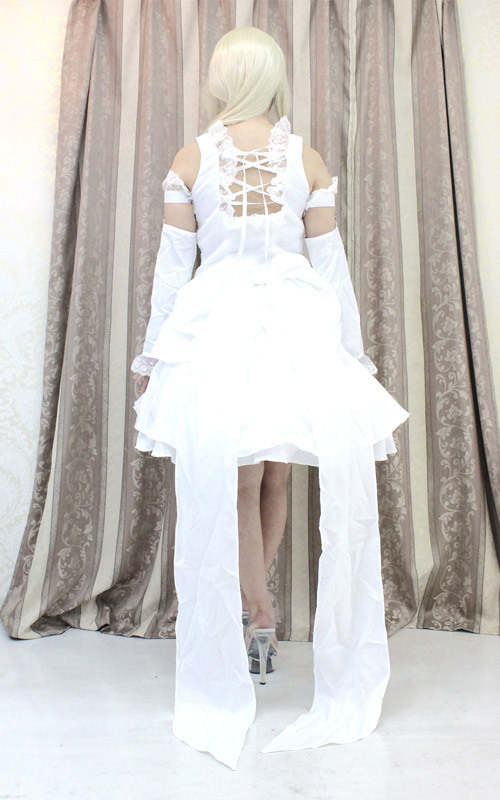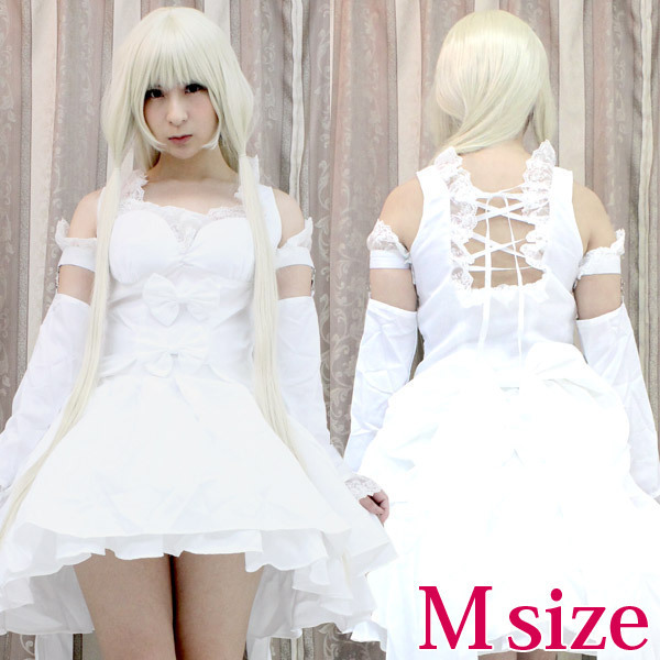 ふんわりミニスカート&トレーン風の長いリボンが素敵な、純白の姫系アニメコスチューム。
