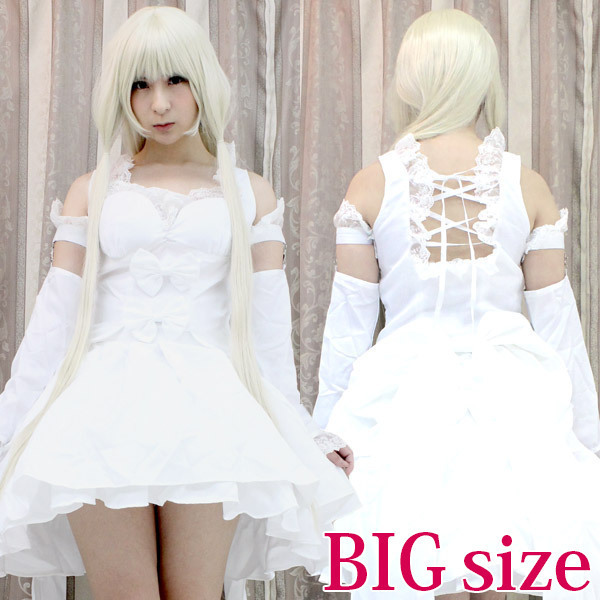 清楚でキュート!大きめサイズ、ロマンティックな純白ドレスのアニメコスプレ。