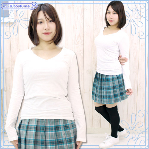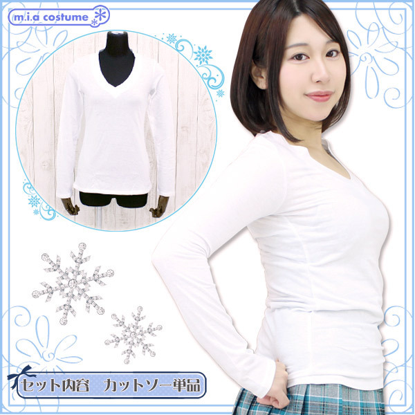 デコルテ&シルエットをすっきり魅せるV字ネックの長袖カットソー(白)。